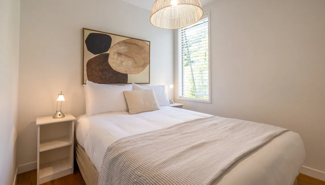 Guests are moments from the beach and have access to the shared gas BBQs set within the landscaped grounds of The Sands. A flat walk along the beach leads to well-known dining spots including Charlie Farley’s, Three Seven Two, and Ki Māha, with several of Waiheke’s vineyards also close by.