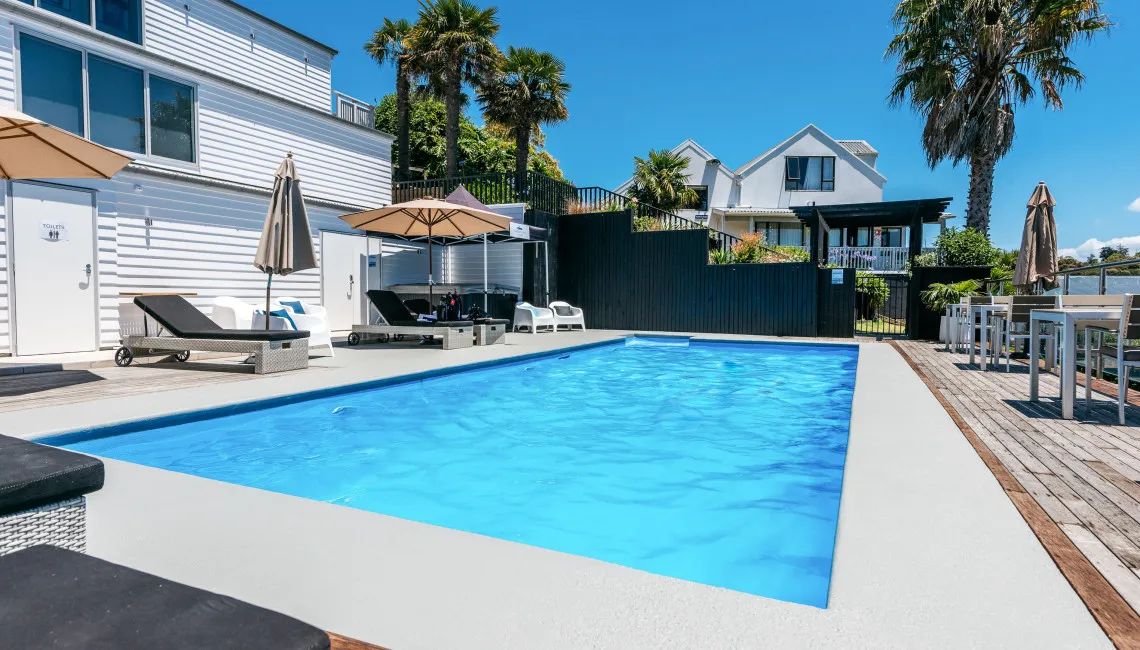 The local bus stops right by the resort entrance, providing simple connections to the ferry, vineyards, and Oneroa Village. Whether you’re here for a weekend of wine and dining or a quiet retreat by the sea, Villa Aqua delivers effortless island living in one of Waiheke’s most beautiful locations.