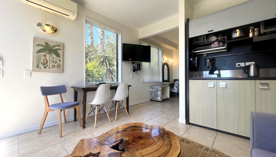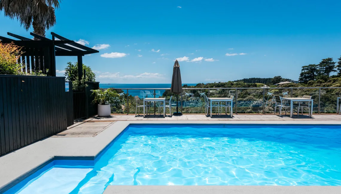 As part of the Waiheke Island Resort complex, guests enjoy access to the on-site restaurant, bar, and swimming pool with poolside food and beverage service (operating seasonally and occasionally closed for private events). The beach is just a short walk away: safe for swimming at all tides, framed by native bush, and home to the local store for essentials and excellent coffee. Arcadia Restaurant, known for its friendly service and fresh, relaxed dining, is an easy ten-minute stroll.