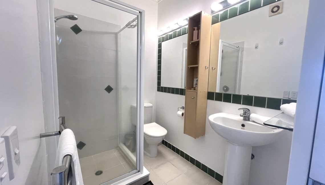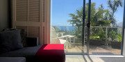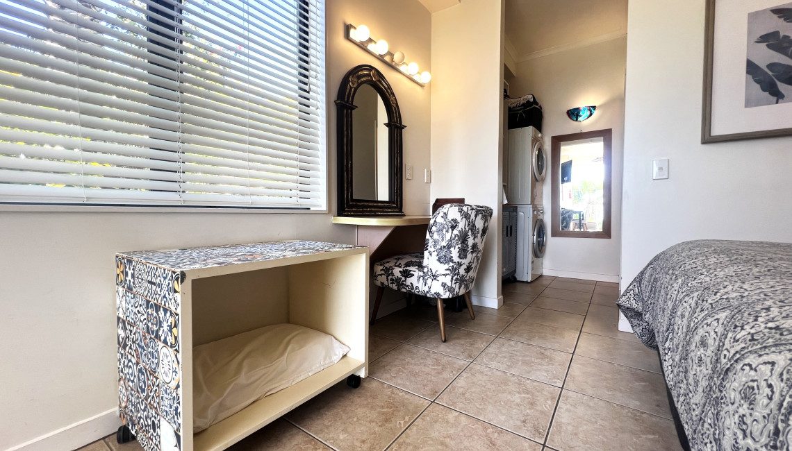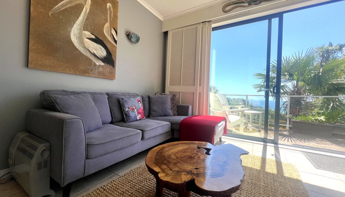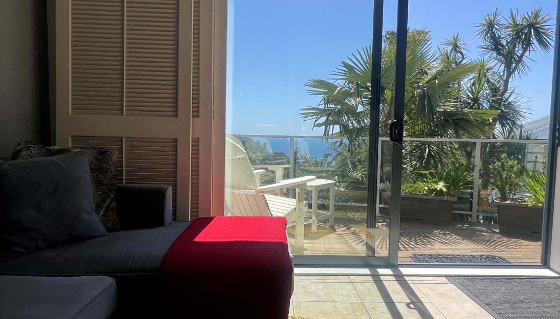 Step onto the private terrace and take in the panoramic sea views — bright mornings, long sunsets, and the gentle sound of birds in the surrounding bush. The modern bathroom includes quality toiletries, soft towels, and heated fittings, and a washer-dryer is provided for longer stays.