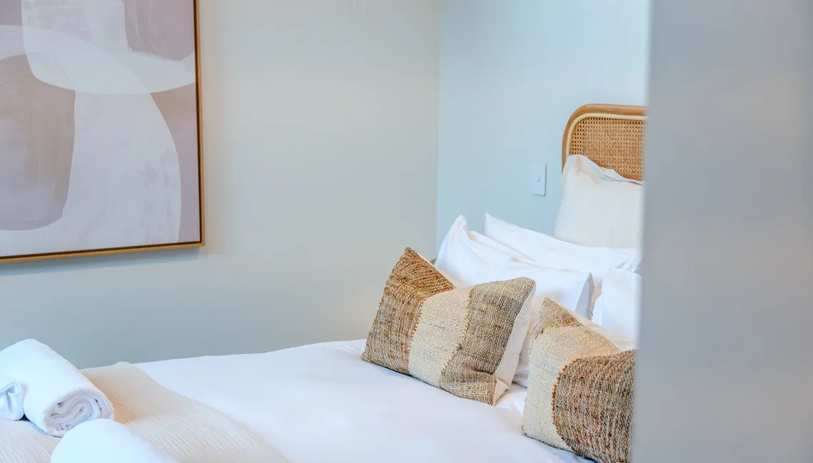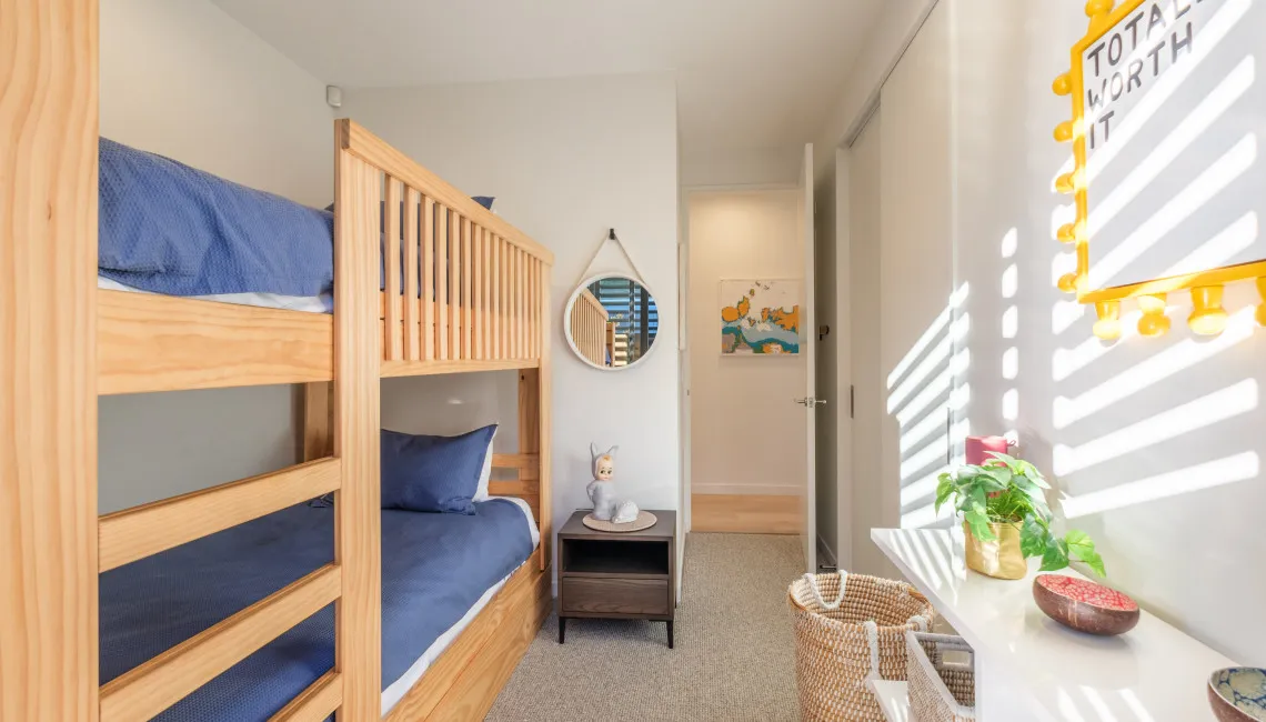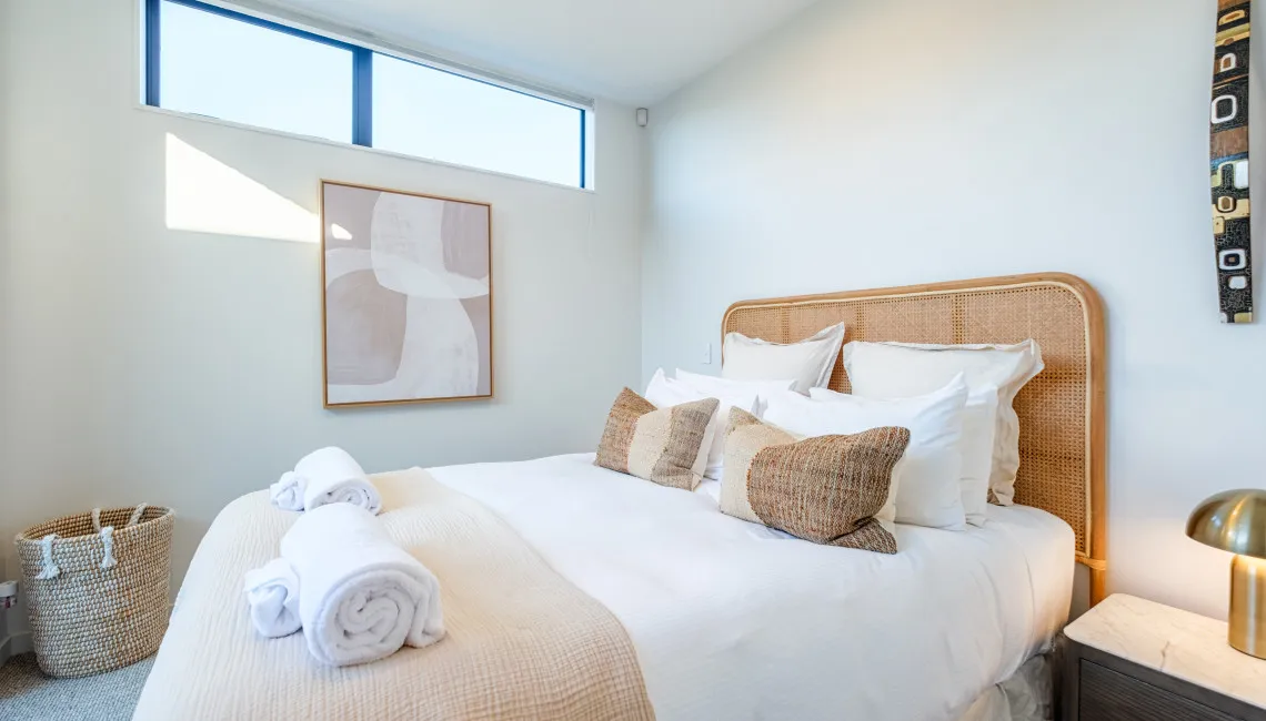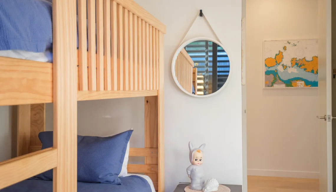 The two main bedrooms are comfortably appointed with king sized, pillow top mattresses, luxury pillows, duvets, blankets and linens. The master has sliding doors opening onto the deck. There is also a bunk room, with two single bunks made up with the same luxury linens perfect for children.