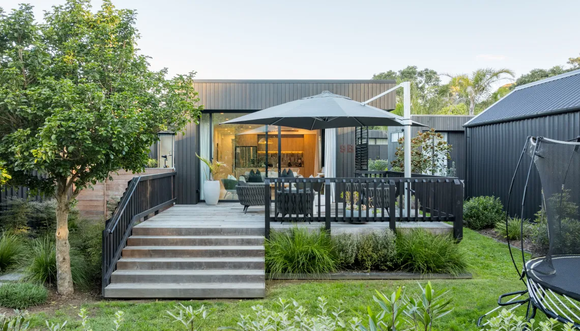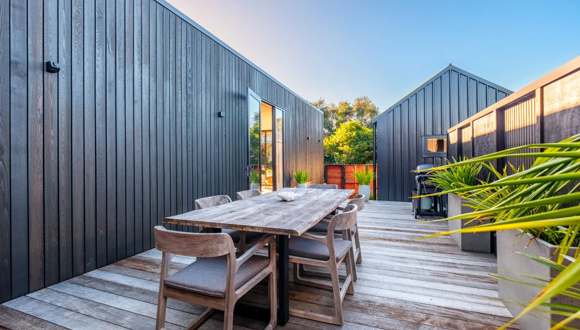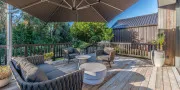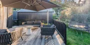 Outside the property really comes to life, with a wonderful outdoor lounge area to the front of the property. Keep an eye on the kids playing on the trampoline whilst enjoying a morning coffee. The side of the house has a private outdoor dining area, with seating for 6 guests and a large gas BBQ.