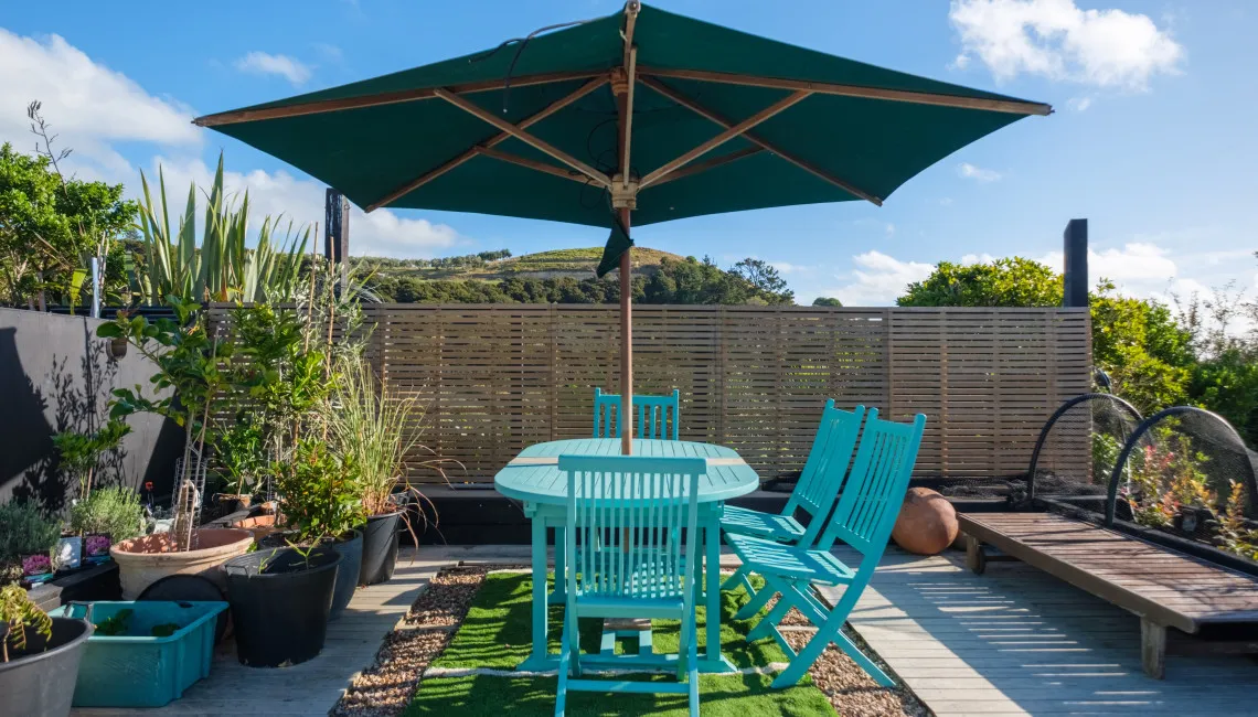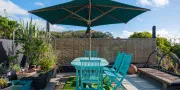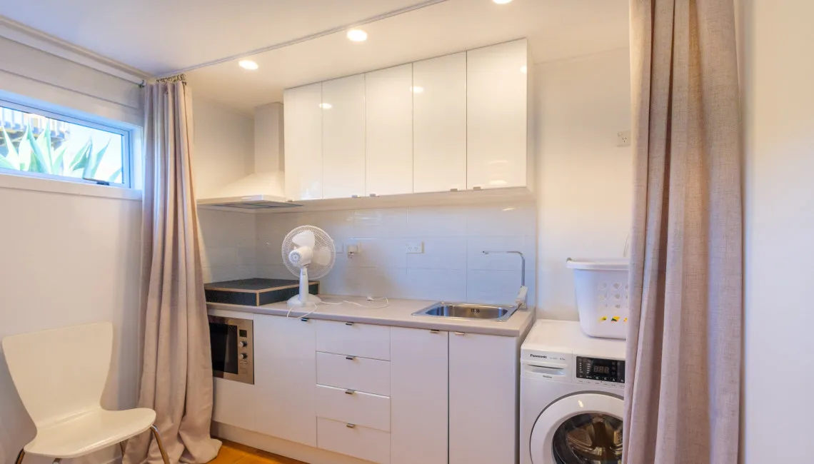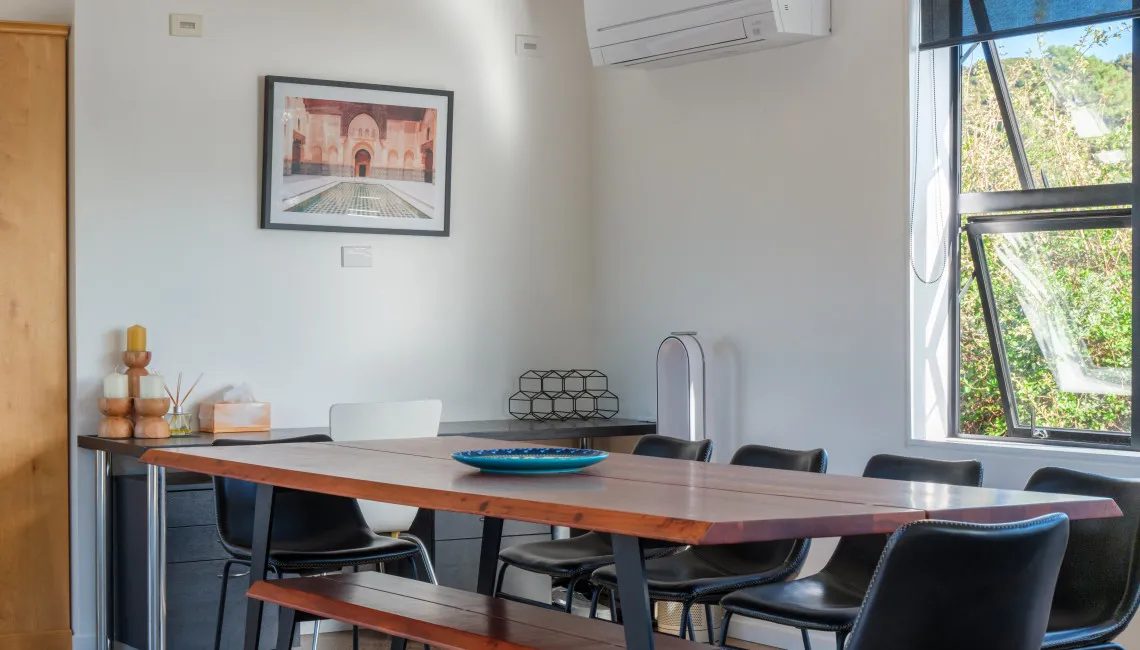 The property features heat-pumps/air-conditioners in the main living space and in the master bedroom, keeping it toasty warm in winter and nicely cool in summer. The sliding doors at the front allow fantastic airflow and a great connection with the outdoor space.