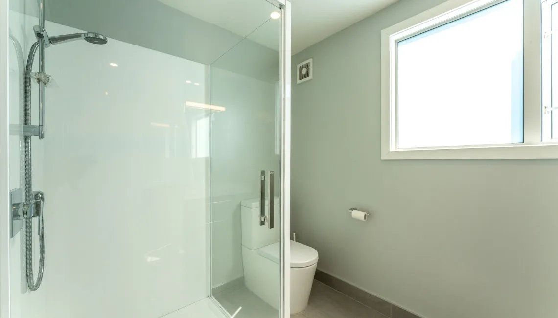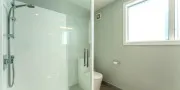 The bathroom is clean and modern with a large shower and plenty of space to get ready for a night out.