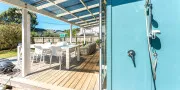 The exterior offers plenty of space to relax in the sun or escape to the shade with a covered area offering protection from the elements.